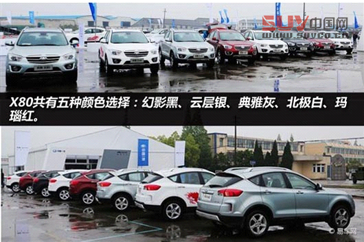 顏色方面,X80車身顏色比較趨于拘謹的配色,僅瑪瑙紅一種亮色。其余均為黑、白、灰、銀這四種常規配色,雖說看起來相對的老氣了一些但在后期的市場保值率還是比較可觀的。