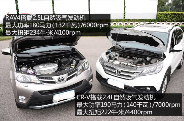 CR-V的動力系統與上代車型相同,最大功率達到190馬力(140千瓦)/7000rpm,最大扭矩222牛·米/4400rpm。相比RAV4來說,這臺發動機更注重高轉速下最大功率的輸出,而在扭矩輸出,特別是中低轉速的扭矩表現上則不及對手。