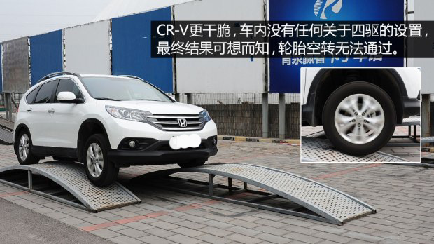 簡單的測試都沒有通過,更難的考試也似乎失去了意義。兩款車都無懸念的失敗了,唯一的區別RAV4尚能自己開上架子,而CR-V干脆需要墊磚才能參與對比,實在讓人大跌眼鏡。這次四驅測試其實沒有贏家,兩個車都用實際行動證明了一點,它們的四驅系統對于實際越野的幫助并不算大,大家還是踏實的在鋪裝路面行駛吧。