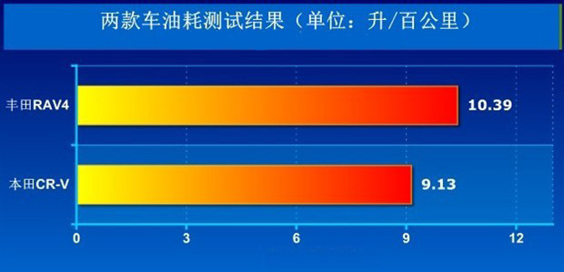 在油耗測試中,我們同時駕駛兩輛車行駛了完全相同的路段,其中約有40%的擁堵路段,最終RAV4和CR-V的平均油耗分別為10.39升/百公里和9.13升/百公里。二者每百公里油耗相差超過1升,其中原因可能是由于RAV4更注重駕駛感,因此油門調校偏向靈敏,這固然使駕駛更加得心應手,但對油耗有不利影響。而CR-V的油門響應相對遲緩,中段加速感覺沒那么暢快,不過卻有助于降低燃油消耗。另外RAV4的輪胎寬度比CR-V的多出10毫米,這也使得滾動阻力增加,同樣速度下消耗更多燃油。
