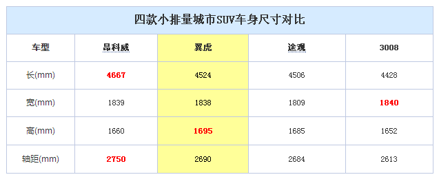 車身尺寸方面,這次推薦的四款車型都比較平均,除了昂科威之外,這三款緊湊型城市SUV相互之間的差別不算太大。不過翼虎的車內空間也有不錯的表現,乘員的舒適性和需要時的載物量都有保證。