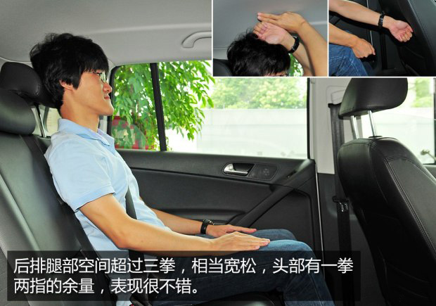 途觀的乘坐空間整體表現很好,身高176cm的編輯體驗時,前排頭部有1拳4指的頭部空間。此時后排腿部有超過3拳的腿部空間,后排頭部空間也有1拳2指,這樣的空間表現非常令人滿意。