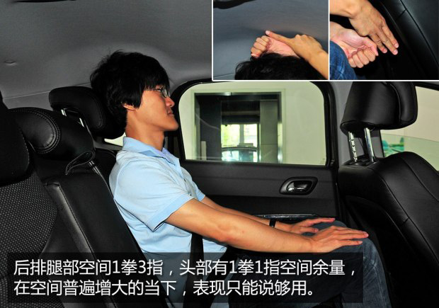 3008的乘坐空間并不占優,身高176cm的編輯在前排時頭部空間為1拳1指。此時后排腿部空間有1拳3指,頭部空間1拳1指。相比今天推薦的另外三款車型,3008的空間表現只能說是夠用。