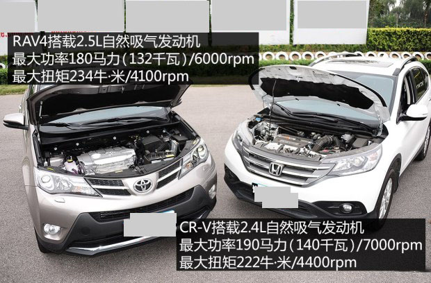 CR-V的動力系統與上代車型相同,最大功率達到190馬力(140千瓦)/7000rpm,最大扭矩222牛·米/4400rpm。相比RAV4來說,這臺發動機更注重高轉速下最大功率的輸出,而在扭矩輸出,特別是中低轉速的扭矩表現上則不及對手。