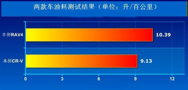 在油耗測試中,我們同時駕駛兩輛車行駛了完全相同的路段,其中約有40%的擁堵路段,最終RAV4和CR-V的平均油耗分別為10.39升/百公里和9.13升/百公里。二者每百公里油耗相差超過1升,其中原因可能是由于RAV4更注重駕駛感,因此油門調校偏向靈敏,這固然使駕駛更加得心應手,但對油耗有不利影響。而CR-V的油門響應相對遲緩,中段加速感覺沒那么暢快,不過卻有助于降低燃油消耗。另外RAV4的輪胎寬度比CR-V的多出10毫米,這也使得滾動阻力增加,同樣速度下消耗更多燃油。