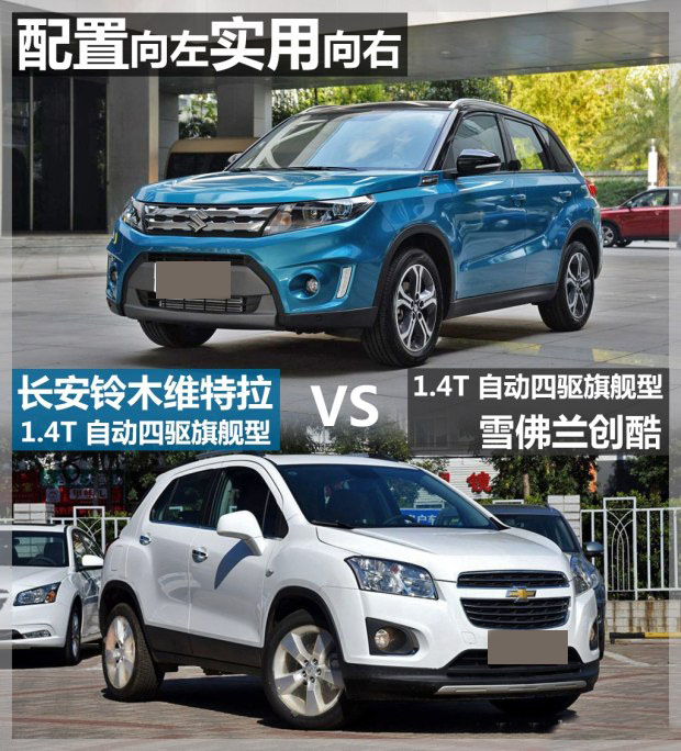 長(zhǎng)安鈴木維特拉于今年11月新鮮上市,提供1.6L(手動(dòng)兩驅(qū)進(jìn)取型/最低配)以及五款搭載1.4T發(fā)動(dòng)機(jī)在內(nèi)的共計(jì)六款車(chē)型可選,售價(jià)在9.98萬(wàn)至15.98萬(wàn)之間。此次我們選擇的對(duì)比車(chē)型是售價(jià)為15.98萬(wàn)的長(zhǎng)安鈴木維特拉 2016款 1.4T 自動(dòng)四驅(qū)旗艦型(以下簡(jiǎn)稱(chēng)維特拉)與售價(jià)為14.99萬(wàn)的雪佛蘭創(chuàng)酷 2016款 1.4T 自動(dòng)四驅(qū)旗艦型(以下簡(jiǎn)稱(chēng)創(chuàng)酷)。由于維特拉新近上市,目前終端門(mén)店暫無(wú)優(yōu)惠,而創(chuàng)酷的1.4T 自動(dòng)四驅(qū)旗艦型在北上廣深以及天津、成都、江蘇等全國(guó)主要城市都有幅度不小的優(yōu)惠,使得消費(fèi)者難以取舍。