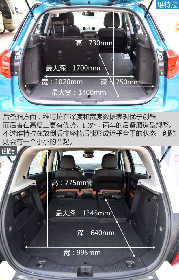 ● 空間:維特拉后備廂更大/創(chuàng)酷車(chē)內(nèi)空間更充分