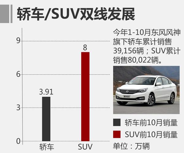 東風(fēng)風(fēng)神旗下?lián)碛修I車以及SUV兩大產(chǎn)品線,并始終堅持“兩條腿走路”。今年1-10月,東風(fēng)風(fēng)神SUV產(chǎn)品累計銷售為80,022輛,同比增長46.2%。雖然SUV產(chǎn)品占比高達(dá)60%左右,但東風(fēng)風(fēng)神的轎車產(chǎn)品也取得了不錯的成績,今年1-10月轎車?yán)塾嬩N售為39,156輛,同比增長42.9%。