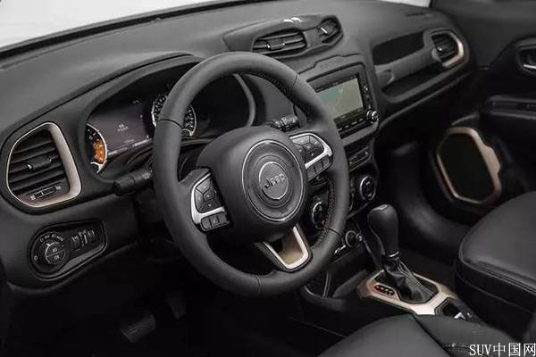 自由俠在內(nèi)飾的設(shè)計上同樣采用了年輕活力的設(shè)計風格,其中控臺上的各功能分區(qū)相對獨立,中控臺及門板采用了多處的軟性材質(zhì)包裹,整體用料及質(zhì)感較為不錯。而該車所裝配的三輻式方向盤也是Jeep車型一貫的造型風格。