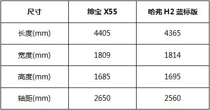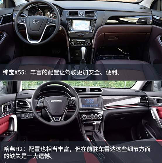 配置方面,為了方便比較,本次選擇了紳寶X55 1.5TCVT豪華版和哈弗H2藍(lán)標(biāo)1.5T自動尊貴型這兩款價(jià)格相近的車型進(jìn)行對比。