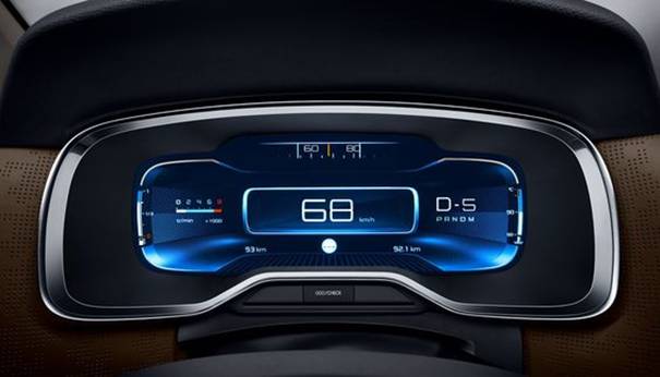 從圖中可以看到,在一般行駛狀態(tài)下,最中間的部分是將車輛速度放大來顯示,而左右兩方則是檔位等信息。根據(jù)官方介紹,儀表盤預(yù)設(shè)了三個(gè)不同的狀態(tài),分為駕駛模式、導(dǎo)航模式和夜航模式。在這些不同的模式下,根據(jù)需求不同,可以與中控屏之間進(jìn)行內(nèi)容互聯(lián),顯示導(dǎo)航、倒車等信息,駕駛員就不需要將視線在儀表盤與中控屏之間進(jìn)行頻繁切換。
