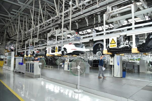 其中,沖壓車間有S1、S2 兩條沖壓線,,自動化率達到了100%。車身車間的焊接自動化率100%,保證了焊接的質量。涂裝車間中,每輛白車身經過分組后,通過密封通道進入涂裝車間,進行前處理、電泳、底噴、涂膠、中涂、上涂、檢測等工序,其中ABB機器人可自動識別并完成15種顏色的噴漆工作。當車身涂裝完畢后就送到總裝廠,進行下一步的總裝工作,總裝車間由內飾線、底盤線、最終線和OK線首尾相連。