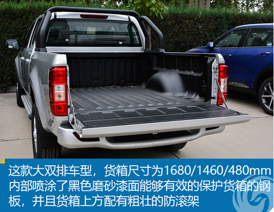 相比其風駿之前的車型,風駿7看起來更為霸氣十足。車頭姿態很高,整車采用更加硬朗的線條,硬派的設計元素更顯美式皮卡的風范。大燈與格柵的設計也更加時尚,貼近于主流。作為一款大雙排皮卡,整車車身長度將近5米4,在駕乘空間與拉貨能力方面,都有著突出的表現。