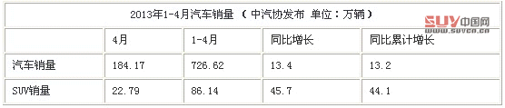 雖然北上廣等城市采取了各種各樣“控制汽車銷量快速增長”的措施,雖然不少汽車行業精英唱衰國內汽車發展前景(如產能過剩等等)。但國內1-4月整體汽車銷量表現卻絲毫沒有疲軟的跡象,尤其是SUV市場表現依然紅火。