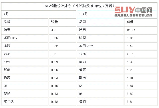 在4月份的銷量統計中,哈弗依然是無可爭議的霸主