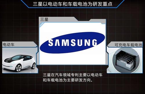另外韓系科技行業(yè)巨頭三星來說,其目前共擁有234項公布專利,并且還有199項專利處于未公布階段。而在已公布的專利項目中,電動車和可充電車載電池是該集團(tuán)主要研發(fā)的項目。可以從中看出三星將未來汽車的發(fā)展重點定位在新能源領(lǐng)域,并且其目前已有名為“電動車及其控制方法”和“機(jī)動車電池管理系統(tǒng)和方法”等多項技術(shù)課題。