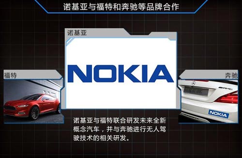 在國內(nèi)有著“最耐摔”手機(jī)之稱的諾基亞品牌,同樣也涉足到汽車行業(yè)中,利用電子科技實現(xiàn)更深層次的個性化服務(wù)。諾基亞地理位置及商務(wù)產(chǎn)業(yè)部作為福特汽車的集成商之一,正共同努力將這種智能技術(shù)推向市場,通過電腦和感應(yīng)技術(shù)讓駕駛成為一種享受。此外,諾基亞和奔馳也聯(lián)合一個團(tuán)隊,利用諾基亞特有技術(shù)的優(yōu)勢,為智能汽車建立一個3D智能地圖,競爭汽車無人駕駛技術(shù)這一新興領(lǐng)域。