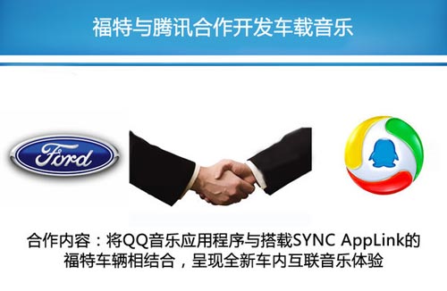 目前福特已經(jīng)與包括中國聯(lián)通和百度在內的多家公司合作,在中國市場上推出不同的移動應用,但這是首次將音樂帶入該應用平臺。QQ音樂是中國領先的網(wǎng)絡音樂播放平臺,其在人們的生活中使用非常廣泛,除了電腦外,它可以被下載到手機等多種移動設備當中,無論是在家中還是上班的路上,人們都可以隨時收聽喜歡的歌曲。這次拉斯維加斯國際消費類電子產品展覽會也是QQ音樂代表中國音樂應用產品首次亮相于國際級科技電子會展。