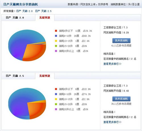 對于眾多老款天籟的車主,油耗表現(xiàn)恐怕是他們足以引以為傲的眾多優(yōu)勢之一。以上是搜狐汽車對網(wǎng)友真實油耗的調(diào)查,可以看到2.0L車型的綜合油耗為8.29L,而2.5L車型的百公里油耗也僅為8.49L,可以說這樣的食量已經(jīng)足夠省糧食了。
