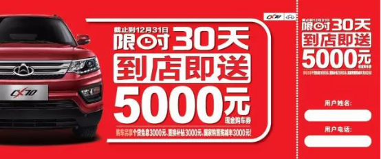 長安CX70還搭載了4G18M2的1.6L自然吸氣發動機,最大功率117馬力,最大扭矩150牛米,百公里油耗僅為7.9L最大負荷525kg,遠超同級車型。想問如此高性能的車子能達到什么樣優惠力度?限時30天!到店即送5000元現金購車券,就問你力度夠不夠大?