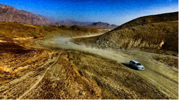 mu-X國(guó)五版穿越在沙石戈壁中。