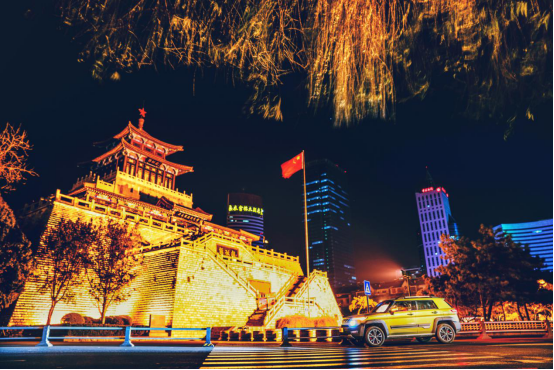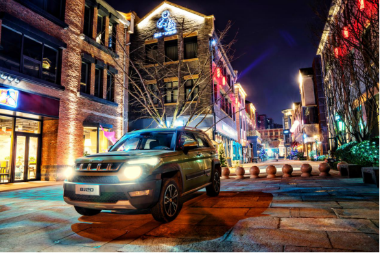 當我們的BJ20跨越千余公里來到濟南,麻辣味道瞬間換成了蔥香。為了與用戶和媒體的充分溝通,它似乎無暇享受當地美食,只是趁著深夜在解放閣前留下足跡,在寬厚里旁稍事休息,待它來到老商埠早已眾人離去僅有五彩光影與它為伴了。BJ20為何只在夜間出行?因為在此之前它正在有型有色的“型動派電音趴”上與大家分享著勁歌熱舞和繽紛涂鴉所帶來的時尚氣息。