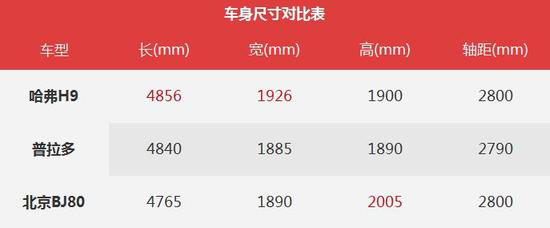 很多人愿意用普拉多的外形去比喻H9,因為它們都是典型的高大威猛風格,都擁有“傲人”的體格,如果查看一下尺寸參數你會發現,H9的長寬高還都超越了普拉多,就沖這個個頭,是不是就很有安全感?