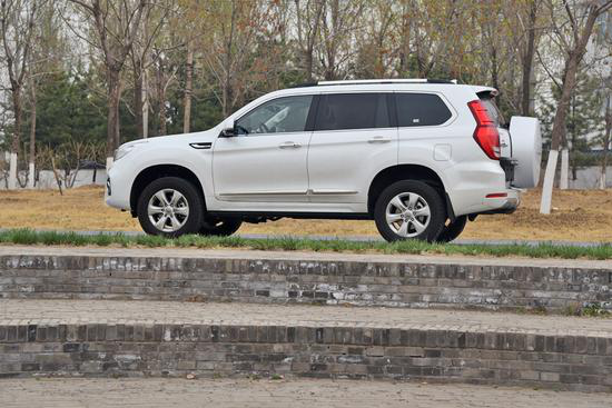 H9的車身側面是相當耐看的,平整的車頂與硬朗的車身線條很符合全地形SUV的定位,完全一副硬派越野車的架勢。