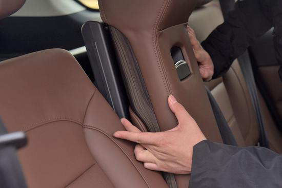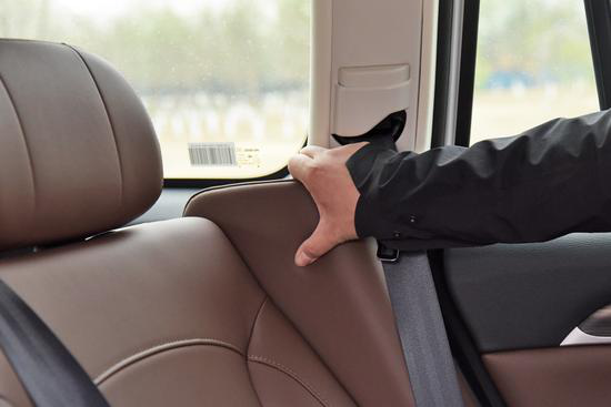 H9的皮質座椅相當柔軟,絕對有家里大沙發的感覺,我們這臺試駕車為5座版本,對于這個級別的車來說,第二排的空間幾乎都不用擔心,身高4550px的體驗者調節好前排座椅后,后排留有相當寬裕的腿部空間,此外后排靠背是可以進行角度調節的,在兩側還設置了專門的肩托,相當周到。