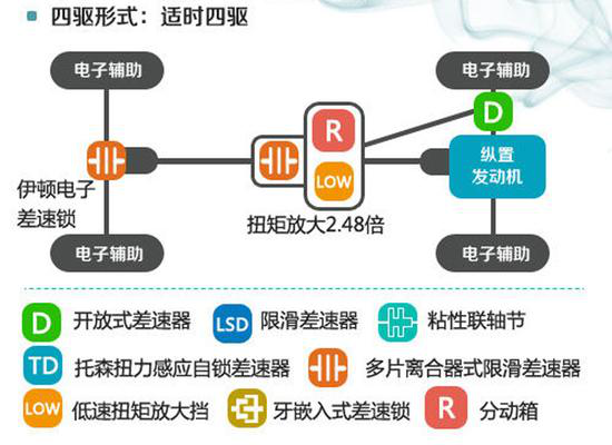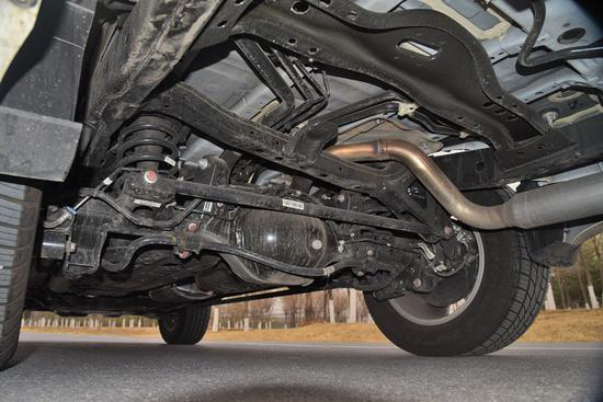 底盤結構還是非承載式車身,前雙叉臂/后整體橋非獨立懸架組合,H9配備的是一套來自博格華納的適時四驅系統,中央為多片離合器式限滑差速器,帶有分動箱和扭矩放大檔,扭矩放大倍數為2.48:1,入門車型的前后橋都是開放式差速器,中高配車型的后橋則帶有一個伊頓式電子差速鎖,所以它的限滑能力就肯定要更加出色一些了。