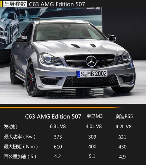 以發動機馬力命名一臺車型,想必需要一定的勇氣,敢于“秀”的數字通常都會讓性能粉絲們垂涎三尺。近日梅賽德斯-奔馳C 63 AMG 在中國市場推出了“C 63 AMG Edition 507”車款,顧名思義其引擎最大輸出功率攀達507馬力(373千瓦)。網通社在此前采訪AMG董事會成員 Tobias Moers時獲悉:“中國已成為AMG全球銷量第三大市場(繼德國、美國之后)”。而此次C 63 AMG Edition 507車款也針對中國市場限量350臺。其中轎車車型售價114.8萬元,轎跑車型售價119.8萬元。
