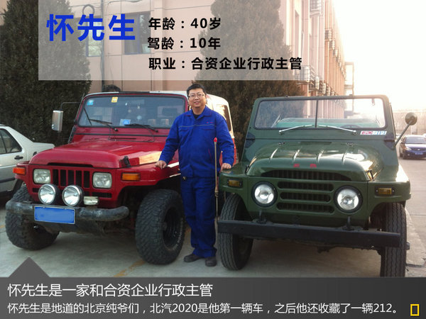 懷先生今年40歲,是一名合資企業(yè)行政主管。“我這輛2020出廠在96-99年之間,和212同屬北汽硬派越野車系列。因為是一輛2門越野車,當(dāng)時銷量并不好,只生產(chǎn)了1500臺左右,但我卻對他情有獨鐘。”說起自己的愛車,懷先生如數(shù)家珍。他兒時的夢想就是擁有自己的越野車,認(rèn)為那樣才夠男人。長大后拿到駕照的第一時間,他立即去二手車市淘了一輛2020,讓夢想成真。