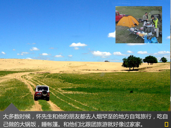 懷先生開著車去過很多地方,但其印象最深的是在2007年的內(nèi)蒙古阿吉納,那是一次七天七夜的旅行。車子行進(jìn)了4000多公里,大多時候都不是在大路上行駛。這些天里,他們一群人吃的是大鍋飯,睡的是帳篷。遠(yuǎn)離城市喧囂,聆聽蟲鳴鳥叫,繁星當(dāng)被,草原如席。懷先生說,這才是他想要的旅行。一路上優(yōu)美的自然風(fēng)光,還有野鹿和駱駝同行,非常愜意。雖然是十幾年的老爺車,偶爾鬧點“小脾氣”,但2020還是走過來了。懷先生說這就是北汽軍工世家的品質(zhì)保證。