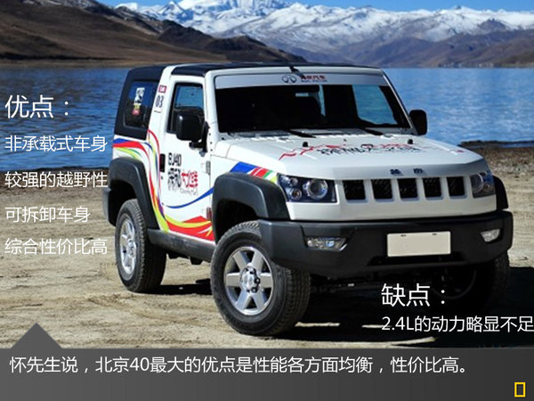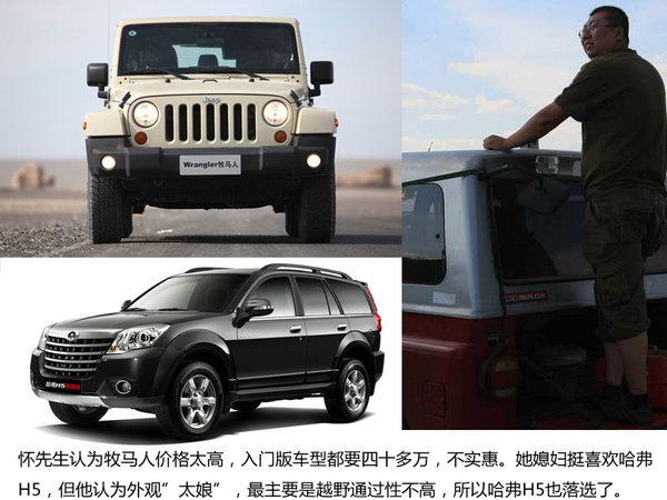 jeep價格太高,入門版車型都要四十多萬,不是太實惠,所以第一個被否決。懷先生說她媳婦挺喜歡哈弗H5,但他認(rèn)為外觀“太娘”,不夠霸氣,而且越野通過性不高。懷先生自駕游的地方路況都比較差,對車輛性能和通過性要求十分高,之后這輛車也被他否決了。前陣子得知北京40上市,懷先生說他終于可以換車了。