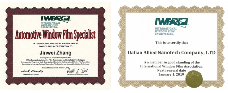2017年5月,中凌窗膜的智造商—大連愛瑞德納米科技有限公司正式成為國際窗膜協會(IWFA)全球第八家會員,并且同時獲得了技術認證與生產認證的“雙認證”。在世界窗膜的版圖上,塑造起一個令國人引以為傲,令國際同行業尊敬的中國品牌。
