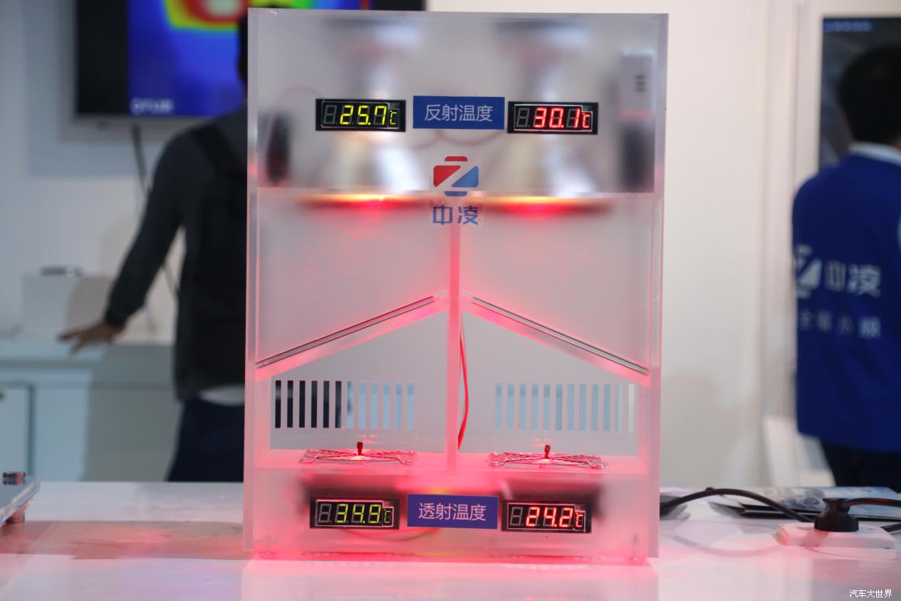 展會現場中凌G70+隔熱膜還與陶瓷膜、普通膜進行了PK。通過紅外溫度測試儀,參會觀眾可以清晰地看到,陶瓷膜將熱量吸附在玻璃表面,猶如給玻璃披上一層被子,中凌膜則可以將熱量反射出去,玻璃表面溫度幾乎不變。同樣條件下的紅外照射下,熱敏感應片迅速捕捉到了透過貼普通膜玻璃的大量輻射熱量,而在貼中凌膜玻璃的一端,卻幾乎感應不到透過的輻射熱量。