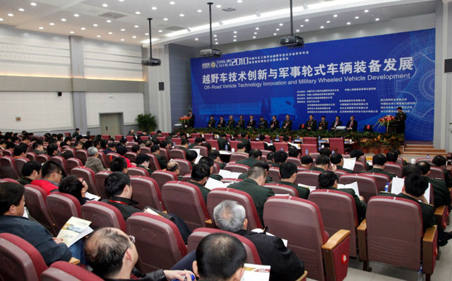 2010年10月28~29日,由中國汽車工程學會越野車技術分會、軍事交通學院聯合主辦的“2010年中國汽車工程學會越野車技術分會學術年會既首屆軍事輪式車輛裝備論壇”在天津軍事交通學院隆重召開,會議主題為“越野車技術創新與軍事輪式車輛裝備發展”。北京理工大學副校長趙長祿、中國汽車工程學會常務理事長兼秘書長付于武等出席了會議,來自國家相關部委、汽車行業組織、國內知名院校和研究機構的有關專家240余位代表參加了此次會議。