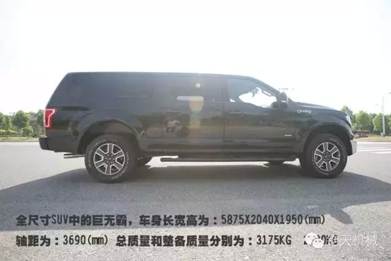 據悉,由江西鈞天汽車推出的定制版福特F150全尺寸SUV將在RA上進行國內市場首發, 該車為全鋁車身,長5875MM、寬2040MM、高1950MM,軸距為3690MM,是真正的巨無霸。目前,該款車型已獲得國家工信部產品公告,可以在市區道路行駛。
