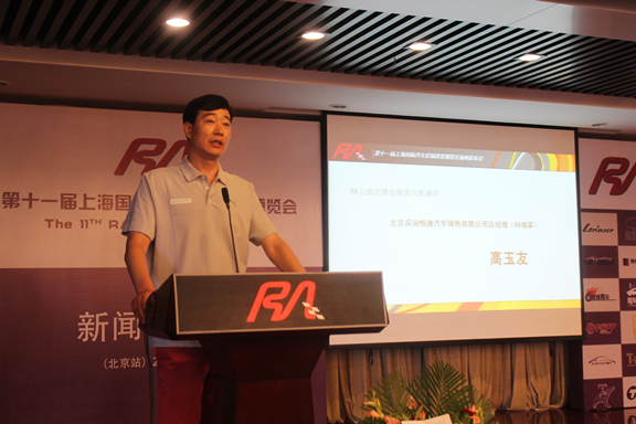 2015年8月10日下午,第十一屆RA上海國際汽車定制改裝博覽會(簡稱RA改博會)在北京酷車小鎮汽車達人會所舉行了新聞發布會。主辦方、合作方、展商代表、新聞媒體共計200人參加會議,發布會通報了RA招商進度情況、觀眾組織情況、改裝峰會情況、現場活動安排及主要參展商情況。