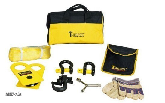 T-MAX救援工具包配備高強度纖維制作的拖車帶以及延長帶、弓形卸扣,動滑輪組件以及耐磨手套,是實際救援過程中非常實用的工具。動滑輪組件方便改變救援方向,可使絞盤拉力倍增。拖車帶、延長帶,可以延長救援的距離,同時該工具包具有結實牢固、質量輕、取用方便等特點。