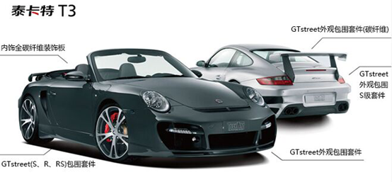 泰卡特推出T3 GT Street RS是最終版的民用賽車。泰卡特針對GT Street RS,安裝了肌肉感更明顯的寬車體套件,包括一些列碳纖套件以及一套源自賽道的20英寸Formula Race單孔式鍛造輪圈,讓本已激進的GT2 RS更加純粹。