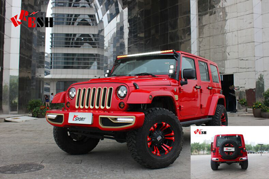 阿波羅前杠套件、阿波羅后杠套件、阿波羅中網(wǎng)進(jìn)氣格柵套件(無孔)、阿波羅四門拉手套件、阿波羅側(cè)標(biāo)、十周年版機(jī)蓋套件、KRESH四門電動(dòng)踏板、KRESH雙排氣套件、J.W.SPEAKER龍版LED大燈、ANZO LED中網(wǎng)燈、ANZO LED輪眉燈、超薄單層LED頂燈(30珠混光)、LED正方形射燈(4珠)4只、頂燈支架、A柱雙層支架、SPYDER LED尾燈、RAMPAGE機(jī)蓋搭扣鎖、TF加強(qiáng)備胎合頁套件、尾窗合頁電鍍件、TF2.5英寸4門升高套件、FOX雙筒減震4根、JKS前止推桿、XD 811輪轂17寸 5只、固鉑STT295 70R17 5條。