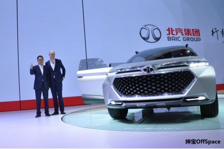 北京汽車股份有限公司總裁李峰(左)、股份研究院設(shè)計總監(jiān)Lowie vermeersch(右)