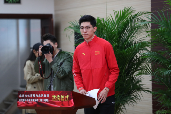 伴隨著《北汽排球——北京體育的亮麗“名片”》宣傳片的落幕,蟬聯兩屆男排聯賽MVP(最有價值球員獎)的當紅小生江川亮相現場,作為運動員代表講話,誓奪新賽季冠軍,活動現場瞬時洋溢積極向上,奮力拼搏的體育精神。隨后,趙文局長與徐和誼董事長簽署了北京市體育局與北京汽車集團有限公司合作振興北京排球運動(第三周期)框架協議、張建東副市長則為新引進的三位外籍球員頒發了球衣,成為“北汽模式”下的北京排球運動下賽季新征程開啟的標志。