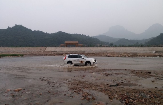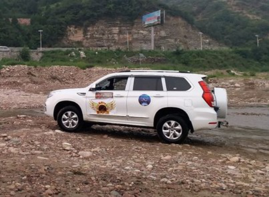 一路聊著,我們開到了一片河道里,林老告訴我,這種地方對哈弗H9沒有任何壓力,因為他這車不但有配備了后橋鎖,他自個還換裝了專門的越野AT胎,這種胎的抓地力更強,越野通過性更佳。來這里,就是洗洗車而已。