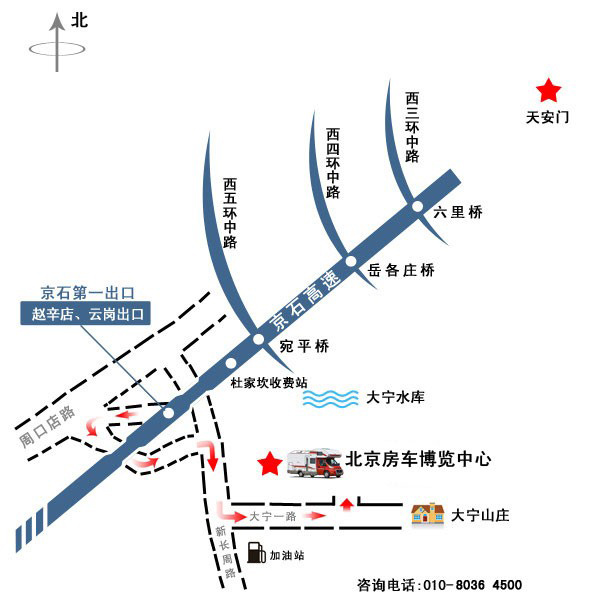 2.京港澳高速(北京)方向--13出口(云崗)---80米右轉(zhuǎn)—300米紅綠燈左轉(zhuǎn)—150米左側(cè)—北京房車博覽中心 GPS定位可以設(shè)定:北京市房山區(qū)大寧高爾夫或者大寧山莊 。