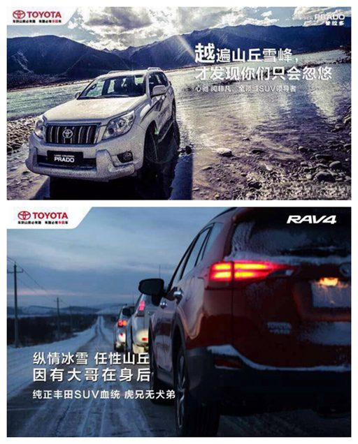 在此次山丘體混戰中,豐田RAV4更是以“縱情冰雪 任性山丘 因有大哥在身后”的廣告語大膽詮釋了虎兄無犬弟的硬道理。“打仗親兄弟,上陣父子兵”,不管是越野專業戶路虎和Jeep,還是兼顧轎車業務的奔馳和豐田,四大廠家在越野車市場領域堅持硬派越野+SUV雙線作戰無不取得了市場的認可,在保留了硬派越野固有的擁躉的前提下,發展SUV細分市場吸納廣大SUV消費者,四大廠家做到了全方位、立體化搶占市場。
