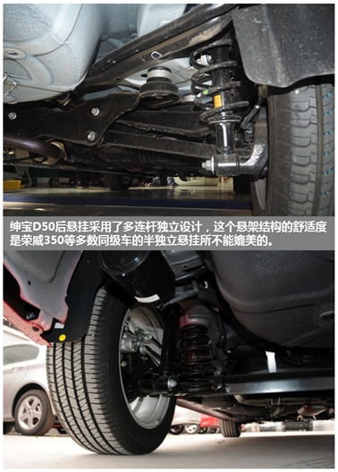 如今在中國家轎市場,舒適性已經是左右消費者購車決策的核心因素,否則,當年某神車也不會因對后懸掛動刀而招致一片“呵呵”。言歸正傳,再看看欲爭奪中國品牌A級車“探花”位置的紳寶D50和榮威350。很明顯,前者對中國消費者心理拿捏的很準,依然采用成本較高的多連桿獨立后懸掛,在整個A級車市場都可謂“誠意滿滿”。同時,其還在副車架創新性加入液壓枕套,進一步增強車輛的濾震性,全面提升乘坐舒適感。反觀榮威350的扭力梁非獨立懸掛,相比實際需求來看,多少有點看不下去。