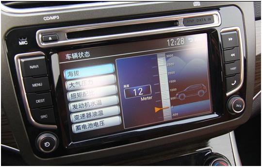 哈弗H8的車廂內的8寸液晶顯示屏,完全漢化,使用可觸屏也可按鍵,而一個不可忽略的小細節就是其中控臺上方的液晶屏幕是能顯示海拔高度的,還有氣壓、指南針,車輛坡度以及車外氣溫,所以這是一款自駕神器,進藏不愁