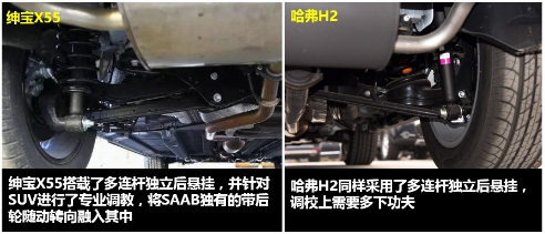 同樣是前麥弗遜+后多連桿獨立懸掛系統(tǒng),紳寶X55對此處進行了精心調(diào)校,除吸收SAAB技術(shù)基因外,還與世界知名廠商米拉公司開展了合作。作為路虎、大眾廠商的御用伙伴,米拉讓這套系統(tǒng)在紳寶X55身上找到了舒適性、平穩(wěn)性新的平衡比例,為消費者帶來了趣動的駕乘感受。同時,為了適應(yīng)中國多彎道的實際,紳寶X55還成功將SAAB的后輪隨動轉(zhuǎn)向功能集成到后懸掛系統(tǒng),由此帶來更好的靈活性。而反觀哈弗H2,在前后獨立懸掛的配置下換來的卻是論壇車主“調(diào)校過硬,顛簸感強”的抱怨聲。